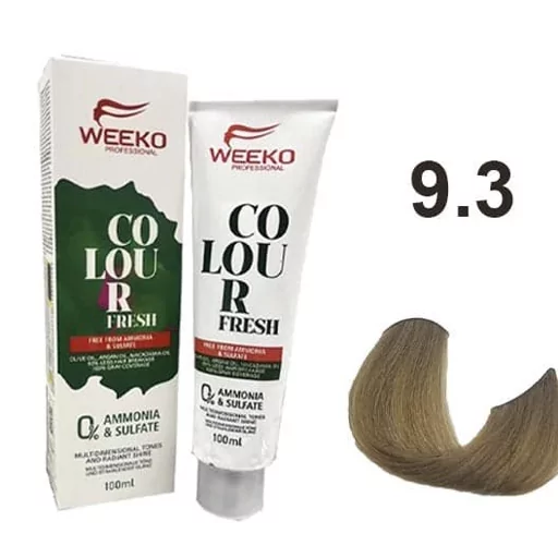 رنگ مو ویکو بدون آمونیاک و فری سولفات شماره 9.3 بلوند زیتونی خیلی روشن