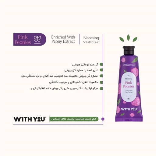 کرم مرطوب کننده دست حاوی عصاره گل پیونی برای پوستهای حساس ویت یو