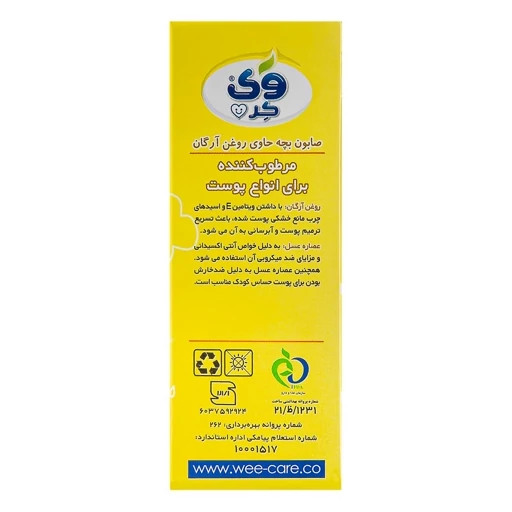 صابون بچه وی کر مدل عصاره عسل و روغن آرگان برای نوزادان تازه متولد شده و کودکان مناسب می باشد و با استفاده از ترکیباتی با پایه طبیعی مثل عصاره عسل و روغن آرگان، طراوت و لطافت پوست حساس نوزاد و کودکان را حفظ مینماید.