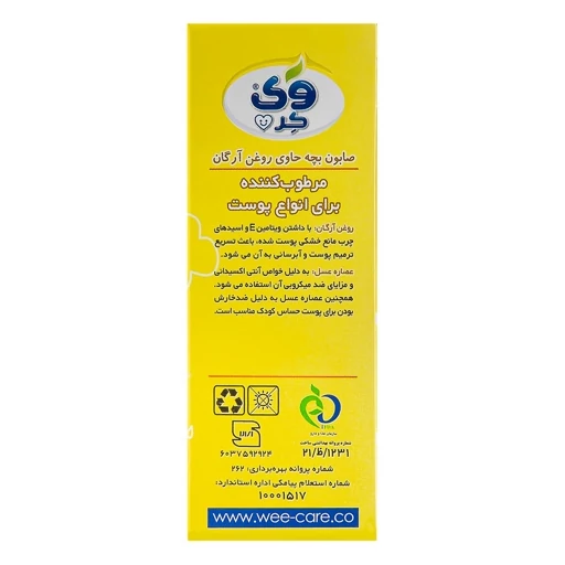 صابون بچه وی کر مدل عصاره عسل و روغن آرگان برای نوزادان تازه متولد شده و کودکان مناسب می باشد و با استفاده از ترکیباتی با پایه طبیعی مثل عصاره عسل و روغن آرگان، طراوت و لطافت پوست حساس نوزاد و کودکان را حفظ مینماید.
