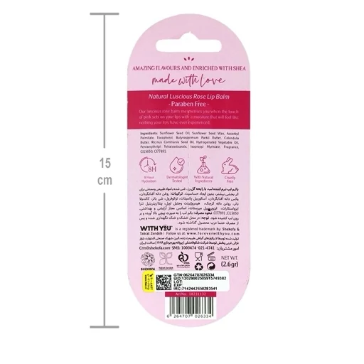 این محصول با الهام از طبیعت و ترکیبی از عصاره گل رز، هر بار استفاده را به تجربه ای آرامش بخش و خاص تبدیل می کند. بالم لب گل رز ویت یو فاقد پارابن و مواد شیمیایی مضر است و به همین دلیل، برای استفاده روزانه و مداوم کاملاً ایمن و بی خطر است. بافت سبک و جذب سریع بالم لب نرم کننده گل رز ویت یو، هیچ حس چسبندگی یا سنگینی روی لب ها باقی نمی گذارد و می توانید آن را به تنهایی یا زیر رژ لب استفاده کنید تا لب هایی نرم، مرطوب و خوشبو داشته باشید.