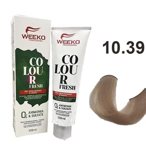 رنگ مو بدون آمونیاک ویکو 10.39 بلوند بیسکویتی فوق العاده روشن تولید شده توسط شرکت ویکو weeko آلمان